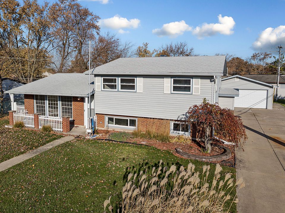 Bright and beautifully updated 3-bedroom, 1.5 bath split level in high-ranked school district - perfectly situated directly across from elementary school! Every inch of this home was refreshed in 2025, including the kitchen with brand new cabinets, quartz counter tops, stainless steel appliances, undermount sink, updated fixtures, and a convenient lookout to the family room. The spacious family/rec room on the main level features a wall of windows overlooking the large, mostly fenced yard with both a deck and patio - ideal for entertaining. Upstairs you'll find all three bedrooms and a fully updated main bath complete with porcelain tile, surround tile, new vanity, flooring and fixtures. Additional updates include new blond wood-look laminate flooring, paneled doors with updated hardware, fresh paint from top to bottom, modern light switches and crisp new trim throughout. Enjoy a covered front porch, a detached 2-car garage, and large newer windows filling the home with natural light. Laundry located in the lower level. Convenient location near expressways, restaurants, shopping and served by top-rated schools - move-in ready and beautifully updated!