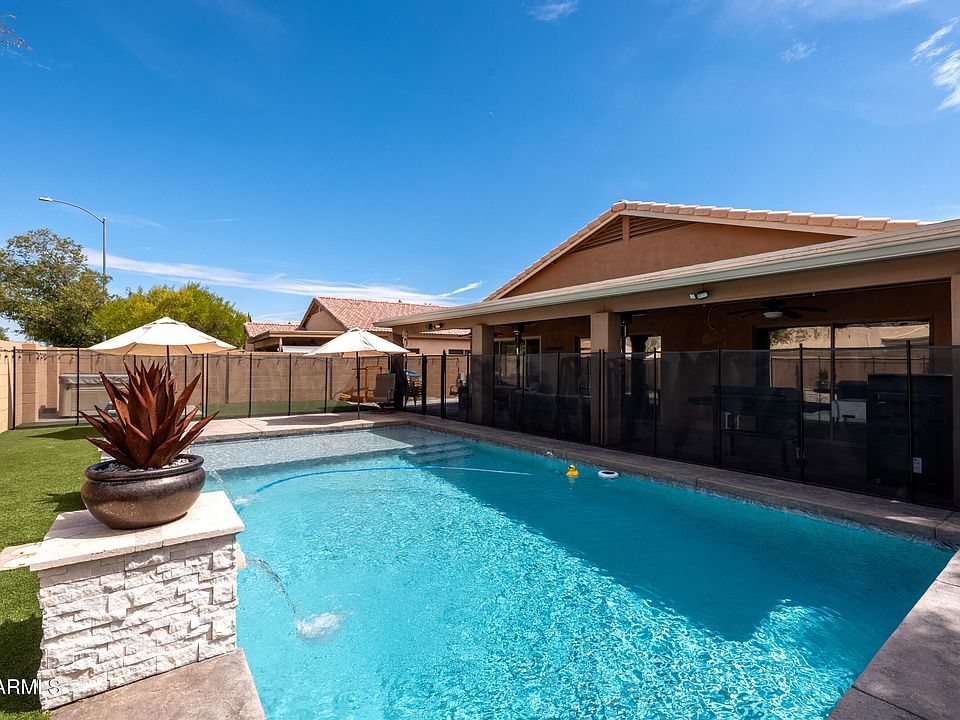 Absolutely gorgeous home located in the desirable Dove Valley Ranch community! This move in ready single-level gem offers 3 bedrooms plus a den, 2 baths, and a newly built custom pool.Home boast all new tile flooring/baseboards and carpet in secondary rooms.Kitchen has good amount of cabinets and counter space with large island.Primary bathroom has been remodeled recently.Newer water heater and HVAC (Trane). Backyard has an extended covered patio and newly built pool that has a variable speed pool pump.All new landscaping in backyard and rock in front yard. This home is perfect for entertaining.Come tour before it's too late!