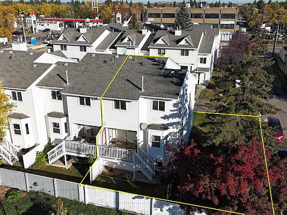 TOWN HOME CONDO Located in the right between Downtown Edmonton and West Edmonton Mall just MINUTES FROM THE RIVER VALLEY and tails, 2 min walk to the NEW LRT STATION that is currently under construction. END UNIT is this small condo project with extra side yard space. STONE DETAILS AND LAMINATE FLOORING throughout the main level with a GAS FIREPLACE AND BAY WINDOW in the living room and Formal dining room adjacent. Kitchen is FILLED WITH NATURAL LIGHT. Lots of cabinets and storage with ROOM TO WORK plus a window over the sink. Spacious Dinette with Garden door to SOUTH FACING DECK that was set up for pets. Upstairs to PRIMARY SUITE FIT FOR A KING with a walk in closet and full ensuite including SHOWER WITH BODY SPRAYS. Bedrooms 2 and 3 are similar in size with a full bathroom adjacent. BASEMENT IS FINISHED with rec room and more storage. Laundry is next to the update furnace and HWT. DOUBLE DEEP GARAGE is 35’ long with extra width near the front. NEW WINDOWS throughout plus a FLEXIBLE POSSESSION!