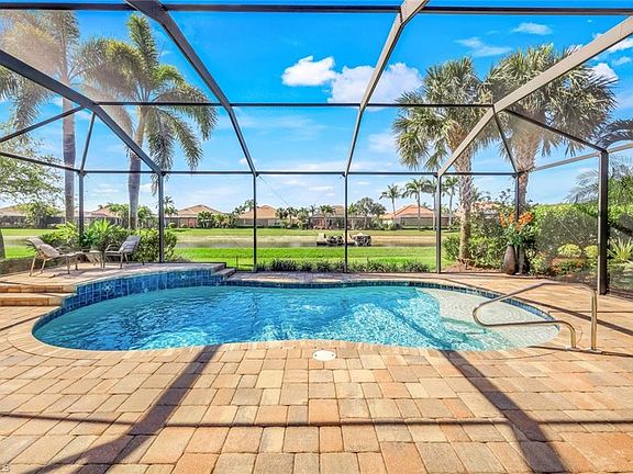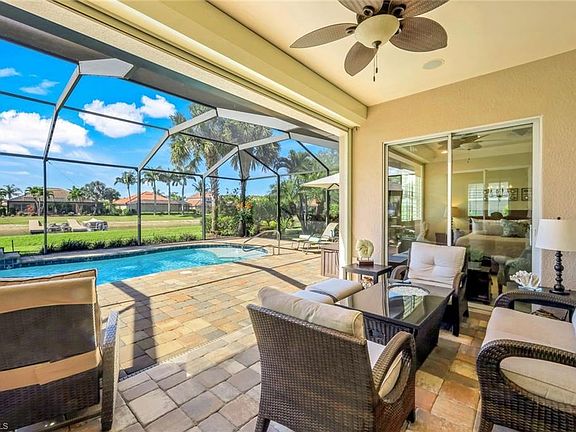 This exquisite home doesn't just offer the Naples Florida lifestysle, it defines it! Welcome Home to Resort-Style Living with Stunning Water Views and a Southern Exposure. This beautifully maintained 3-bedroom, 2-bath home offers the perfect blend of luxury, style and comfort. The expansive lanai serves as an idyllic oasis for quiet reflection or alfresco entertaining beneath the warm Florida sun. Set amidst the natural splendor of a pristine freshwater lake and a picturesque golf course, this home enjoys a setting of unparalleled tranquility and scenic beauty. Step inside to a bright and sun-filled open floorplan that allows plenty of room for family gatherings and entertaining guests. Upgrades include Solar heated pool, Plantation Shutters throughout, crown molding, quartz counters, newer light fixtures, newer carpet in the bedrooms. The open kitchen and spacious island create an inviting hub for gatherings, seamlessly extended by three sets of sliding doors that blur the line between indoors and out. Discover the elegant retreat of the Primary Bedroom; well suited with 2 closets, dual vanities, private water closet, walk in shower and soaking tub. The versatile third bedroom effortlessly adapts to your needs—functioning as a guest suite, home office, or both - featuring a built-in Murphy bed, custom desk area, and sleeper sofa for added convenience. Completing the home is a meticulously organized two-car garage, finished with epoxy flooring and an array of custom shelving systems for optimal storage and functionality. Residing within The Quarry, residents enjoy access to a wealth of world-class amenities. The renovated Beach Club serves as the vibrant centerpiece of the community, offering both casual and fine dining experiences. Wellness and fitness are elevated with a state-of-the-art, two-story fitness center, complete with a variety of group classes and personalized training options. For nature lovers and outdoor adventurers, The Quarry is a true sanctuary. With over 500 acres of navigable lakes, opportunities for boating, kayaking, paddleboarding, and fishing abound. Scenic walking trails meander through lush preserves, inviting peaceful exploration and an immersive connection to nature. This is more than a home, it is a lifestyle of sophistication, serenity, and unparalleled recreation.