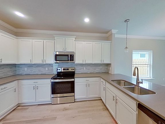 This brand new, 1,710 square-foot home will have three bedrooms and two full bathrooms aswell as a flex room. It also includes a back lanai and a two-car garage with rear entry. Featuresinclude quartz countertops, crown molding, a stainless steel appliance package, and vinylplank flooring throughout living areas. Front-yard landscaping maintenance is included.