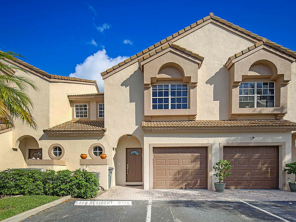 Welcome to this beautifully upgraded 3-bedroom, 2.5-bath townhome in the sought-after gated community of Coral Lake in West Boca! Rarely available and full of charm, this light-filled home features an open-concept layout with soaring vaulted ceilings and skylights that create a bright, airy feel from the moment you walk in. Recently refreshed with brand-new flooring, fresh paint, updated baseboards, and smooth ceilings (no popcorn!), it's truly move-in ready. The stylish kitchen shines with solid wood 42'' cabinets, granite countertops, a full granite backsplash, a raised counter bar, and custom cabinetry that adds valuable extra storage. Upstairs, the double-door entry welcomes you into a spacious master suite with a beautifully redesigned master bath. The oversized 2nd and 3rd bedrooms offer incredible space and generous closetsperfect for guests, family, or a home office. With no rear neighbors, you'll enjoy added privacy and peaceful living in this exceptional home. Every detail was thoughtfully upgraded to maximize comfort, style, and functionality.