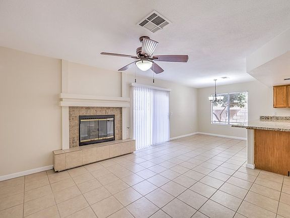 Beautiful Move in ready 3 Bed 2 story house with ceramic tile throughout downstairs & new plush carpet upstairs* kitchen boasts granite counters, crisp white appliances & plenty of cabinet space* Cozy fireplace in the family room* Spacious primary bedroom has large walk-in closet & ceiling fan* Primary bath boasts separate garden tub/shower, granite counter & double sinks* Good sized secondary bedrooms w/Jack-n-Jill bath* light fixtures, ceiling fans. garage has storage cabinets. Large pool sized backyard w/extended patio great for entertaining* Low maintenance front and backyard have desert landscape w/mature trees* Desirable corner lot w/long driveway* close to schools, parks, hospitals, shopping, restaurants and freeway