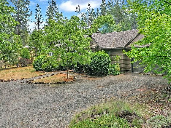 This custom home is located on 5 acres in the foothills of the Tahoe National Forest in Oregon House, California. It is a short 10 minute drive to Collins Lake, Bullards Bar Reservior, Lake Mildred, and Lake Francis for more beautiful scenery and entertainment. The 8 foot fence completely wraps the property which is full of pine trees, gorgeous shade, and sits back far from the road for added privacy. Automatic gate installed, complete with sensors and keypad. Enjoy the open concept living spaces with built in dining area including abundant storage and eat in countertop. The kitchen includes KitchenAid gas range, large oak cabinets, and full pantry to maximize the space. The living room stays warm and cozy in the winter months with the Lopi Cast Iron Wood Burning Stove installed by Sierra Timberline of Grass Valley, January 2020. The vaulted ceiling in the living room adds to the open concept of the home. Quality Anderson windows throughout compliment the Brazilian Teakwood flooring
