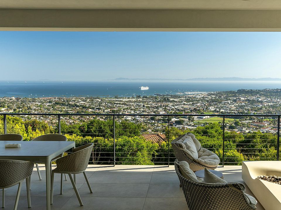 Perched atop Santa Barbara's Riviera, this newly built, one-of-a-kind contemporary masterpiece offers unparalleled elegance, cutting-edge technology, and seamless indoor-outdoor living. Constructed by Allen Construction and enhanced by Cornerstone Landscapers, this exceptional residence showcases breathtaking panoramic ocean, city, and island views from every level. Expansive floor-to-ceiling sliding doors seamlessly fold, opening the home to sweeping vistas from the outdoor terrace. The interiors boast soaring 10-foot ceilings, wide-plank wood floors, automated shades, Lutron lighting, and a state-of-the-art Savant smart home system. The gourmet Italian kitchen is a chef's dream, featuring sleek cabinetry, Wolf and Miele appliances, Sub-Zero refrigeration, and a butler's pantry with ample storage. The primary suite is a private sanctuary, offering blackout shades and a serene ocean-view terrace. The spa-inspired marble bath is designed for ultimate relaxation, complete with radiant heated floors, a soaking tub with breathtaking views, and a heated towel rack. Designed for resort-style living, the 15' x 45' infinity-edge pool and spa are complemented by an outdoor kitchen, automated sunshades, and lush landscaping. Additional highlights include a media room with a bar, a home gym with an infrared sauna, a security system, solar panels with LG Powerwall backup, and extensive drainage and irrigation systems. A true Riviera masterpiece, blending luxury, innovation, and sustainabilityjust minutes from downtown Santa Barbara.