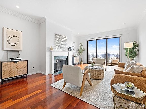 Perched in the scenic hills of Twin Peaks, this expansive 1-bedroom, 1-bathroom condo offers nearly 1,000 square feet of elevated city living with cinematic views that stretch across San Francisco and the bay. Inside, warm cherrywood floors and recessed lighting set an elegant tone throughout the open-concept layout. The spacious living room, centered around a classic fireplace, opens to a private balcony where you can sip your morning coffee or unwind while the skyline shimmers below. The adjoining dining area leads to a bright kitchen, thoughtfully appointed with stainless steel appliances and generous cabinetry. Down the hall, the oversized bedroom features plush carpeting, dual closets, and its own dazzling city outlook, while additional hallway closets add abundant storage and a spacious bathroom boasts an extra-wide vanity and a separate water closet for added privacy and comfort. Enjoy the ease of a deeded parking space, additional private storage, elevator access, and laundry rooms conveniently located on each level. Located just moments from Noe Valley, Castro and Diamond Heights, you'll enjoy easy access to Whole Foods, Safeway, neighborhood restaurants, boutique shops, local parks, along with the iconic trails of Twin Peaks.