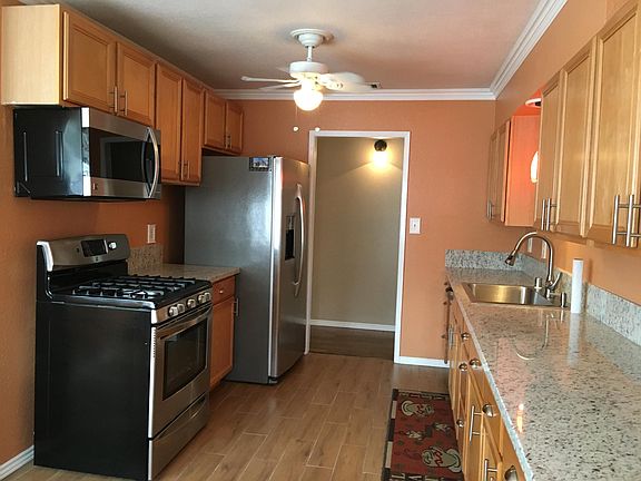 Remodeled kitchen and bathrooms, Hardwood Flooring, New Granite Countertop, Stainless Steel Appliances (Refrigerator, 5-Burner Gas Stove, Convection Microwave, Dishwasher) Jacuzzi Bathtub, Large Shower with Bench Seat, Central A/C & Heat, Fireplace, Washer & Dryer included. Large covered patio. Gardener included. New Cordless custom blinds in all bedrooms. Absolutely no pets. No Smoking. Single family Residence.