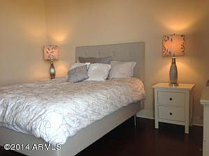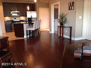 Desirable North Shore offers Urban Life Style condo on the 4th floor. Relax while enjoying views of Tempe lake, PHX city scape, A mountain, and ASU campus. Next to walking/biking path/1500 acre Papago Park for additional hiking trails, lake side park. This 2bdrm, 2bath luxury condo enjoys an entertaining view patio with fireplace. Stainless appliances, reverse osmosis water system, walk in pantry, granite counters/island, washer/dryer. Master en suite w/soaking tub, separate shower and lrg walk in closet, access to view patio. Second bedroom has a large walk in closet and access to view patio. Great room floor plan with split bedrooms for privacy. Upgraded hard wood floors, granite baths and Baker Brothers high end window duet room darkening shades. Show your fussy buyers.
