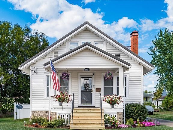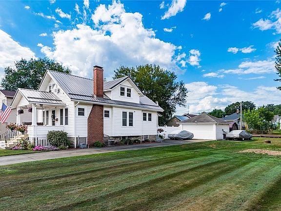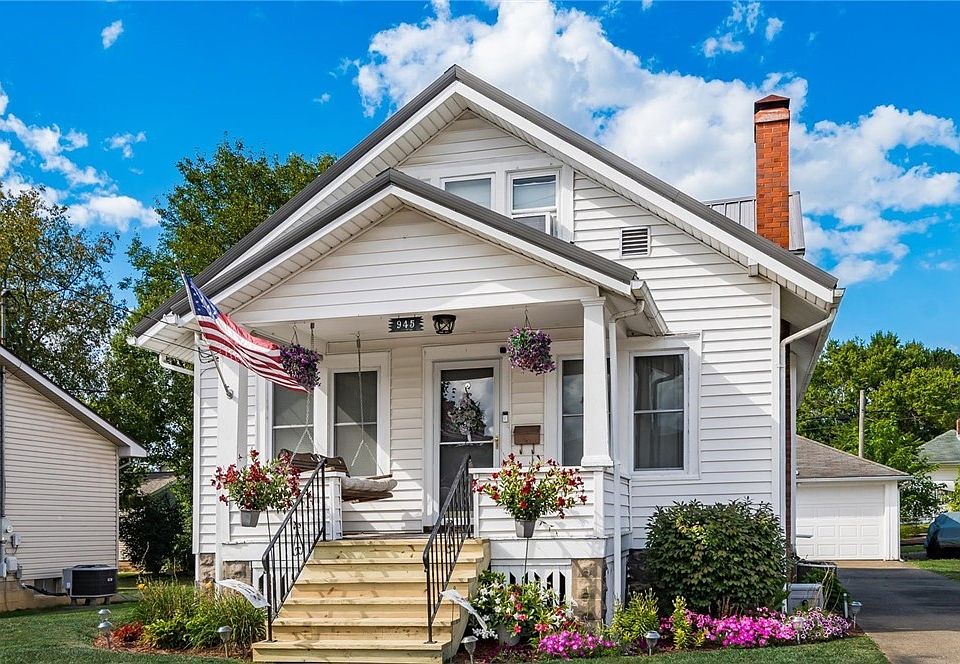 Welcome to this charming home that has so much to offer the new Owner. The covered front porch has new steps. The porch is very spacious and open. Entering the house you have a fireplace that the owner has only used as ornamental with a mantle for decorating. The living room is open to the nice sized dining room and kitchen. The kitchen has been updated with beautiful new white cabinets, granite counters, sink/faucet and stainless steel appliances. All of the kitchen appliances will convey with the sale. The updated bathroom includes a vanity with a tub/shower combination. The two bedrooms on the first floor complete the first level. There is updated flooring on this level of the home. The upper level is the bonus to this home, so many options. This very large space would be a fabulous primary bedroom or a great family room. There are several closets for storage. The laundry area is in the basement.The basement has interior and exterior entrances. The windows have been updated in the home.The backyard has a wonderful above ground salt water pool and is fenced in for your privacy. There is a 2 car detached garage. This home has a second parcel of ground. There is a ring camera at the front door. The Hot Tub and the shed do not convey with the sale of the home.