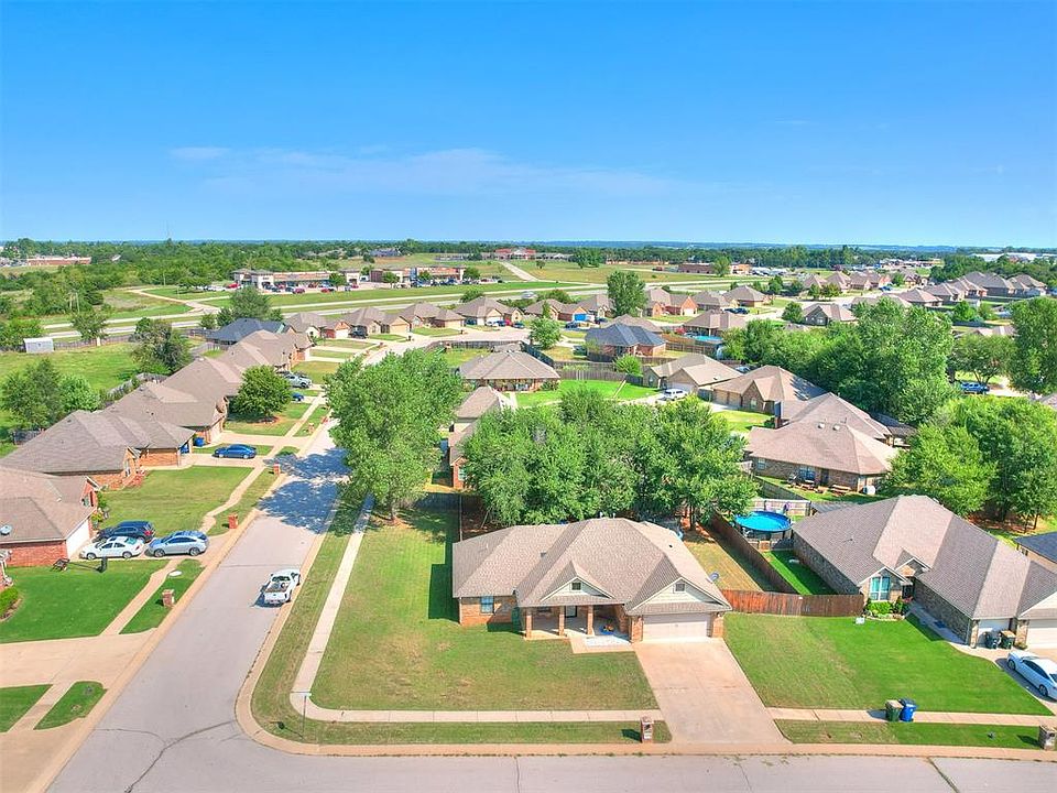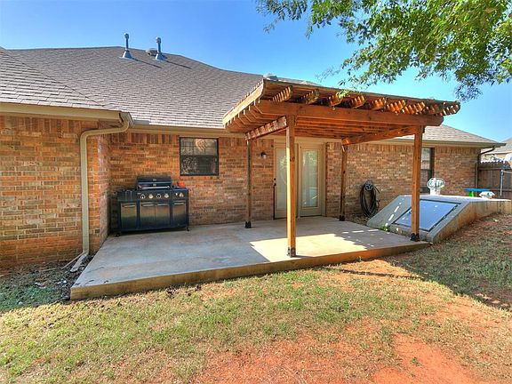 Charming 3-bedroom, 2-bath brick home on a spacious corner lot with fenced backyard. The open floor plan features a kitchen with granite countertops, stainless steel appliances, built-in microwave, pantry, and dining area. The primary suite offers a walk-in closet, full shower, and separate soaking tub. Enjoy outdoor living with a pergola-covered patio and the added security of a storm shelter. A 2-car garage provides convenience, and the neighborhood sidewalks make it easy to stroll or bike around the community. EZ access to Highway, located near many restaurants. EZ commute to OKC or Norman areas. This property as 2 lots. This home will go USDA 100% loan.