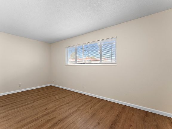 880sf. Deck is 200sf. Move-in condition. New laminate wood flooring throughout the unit. Tiled floor kitchen with new granite counter and deep wash sink, electric range, refrigerator and garbage disposal. Eating area in kitchen. Bathroom with newly remodeled tiled walls, floors, vanity. Good sized bedrooms with double-sliding door closets. 2 hallway closets are used for extra storage. Double-pane windows that keep(s) the apartment very quiet and secure. Corner unit with extra windows and a beautiful private deck which has two entrances. The property is fenced in with entries to landscaped courtyard and automatic entry for parking with a electric gate. On-site laundry and mailroom. Charming, landscaped with open courtyard. On-site manager.