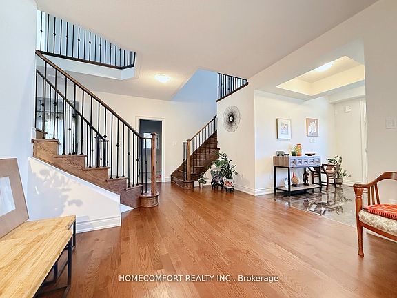 Absolutely Stunning 4 Bedroom Home In Bradford. Good View At Front, Many Upgrades, 9' Ceilings On Main, large windows in basement, Family Size Kitchen With Centre Island. S/S Appliances, Hardwood On Main Floor And Upper Hallway, Double Harwood Staircase, Double Door Entrance, Main Floor Laundry, Master Double Sided Gas Fireplace In Family Room And Office. Close To School, Shopping, Centre, Easy Access To Hw400.Walk To Elementary & B.H. Secondary School & Parks.