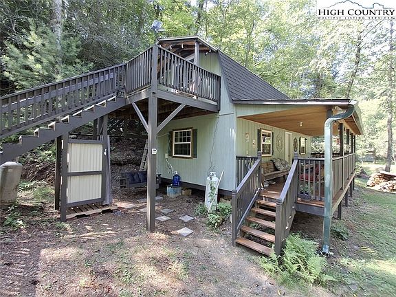 The main cabin features a composting toilet, a sink with a gravity-fed water system from a 5-gallon container, and an outdoor shower setup. The big cabin on the left is connected to the power grid, while the second smaller cabin runs off solar panels and a battery box for off-grid living. Surrounded by Stone Mountain State Park land, this property provides unmatched privacy and access to nature. Best of all, there are no restrictions—giving you the freedom to enjoy it your way.