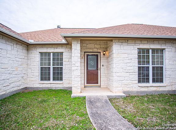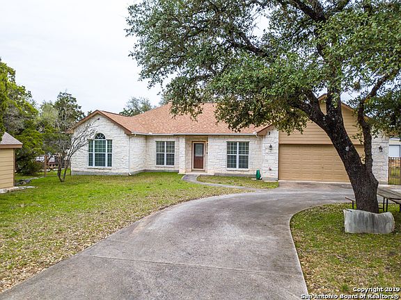3/2/2 on 1/2 acre lot mature trees open floor plan, can lighting, raised tray ceilings crown molding, gorgeous rock fireplace 2 dinging areas, functional kitchen under cabinet lighting solid wood cabinets breakfast bar seating master bath has dual vanities, large soaking tub, separate shower ample storage space, large walk in closet covered back patio large shed -washer, dryer, refrigerator, security system & water softener ALL convey to the buyer! COMAL ISD Rivermont community 3 parks- pool, tennis & more