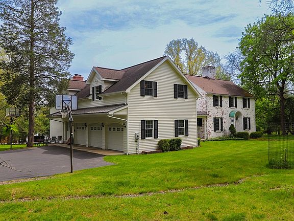 Classic 1939 brick Colonial meets modern convenience in this amazing expanded home in West Elmira! Far too many features to mention. Picturesquely situated on an oversized flat lot, an opportunity for the best of both worlds; original pine plank flooring, built-ins, wainscot molding and classic charm in the original build. An owner's suite with dressing room and ensuite bath, and third floor yoga studio top it off. The addition houses abundant space and tons of natural light, an island kitchen w/ walk-in pantry, a huge workshop below the 3 car garage, 2 bedrooms, a full bath and studio above. Separate stairs to each side's 2nd story allows for separation of living quarters, perfect for multiple generations under 1 roof! 3 fireplaces! See the 3D tour to fully grasp this fantastic floorpan.
