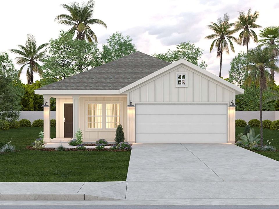 This single-story home proves you don't have to sacrifice comfort or luxury for easy-care living. The open-concept layout seamlessly connects the kitchen, living, and dining areas. In the kitchen, you'll find stained Maple wood cabinets, Quartz countertops, tile flooring, and GE stainless steel appliances. This home features three spacious bedrooms and two bathrooms, including the primary suite with a walk-in closet, backyard views, and a stylish full bath offering a vanity sink and a walk-in shower. The two guest bedrooms have easy access to a full bath. For added convenience, there's also a utility room and an attached two-car garage. Maple Wood Painted Cabinets Quartz Countertops GE Stainless Steel Appliances - Gas Tile Flooring*Photos do not represent final production of home.