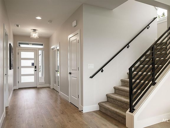 Build The Chinook by Pacific Lifestyle Homes. Spacious. Stylish. Exceptionally Livable. An eye-catching two-story home offering the perfect blend of traditional charm and modern functionality. With 2,687 sq ft, this thoughtfully designed floor plan features 3–4 bedrooms, 2.5 bathrooms, a den, and an optional 2- to 3-car garage. Step onto the welcoming front porch and into a defined entryway that sets the tone for the entire home. A private den near the entry is perfect for a home office or quiet retreat. The heart of the home is the expansive great room and open kitchen, complete with a large island, walk-in pantry, and plenty of space for entertaining and everyday living. A nearby mudroom adds convenience and connects to the garage. Located in Sagarra near Orchard Park, you’re close to WinCo, Meridian Library, dining, and more. Photos shown are of a previously built Chinook, yours will be brand new and completely personalized at our 5,000 SF Design Studio.