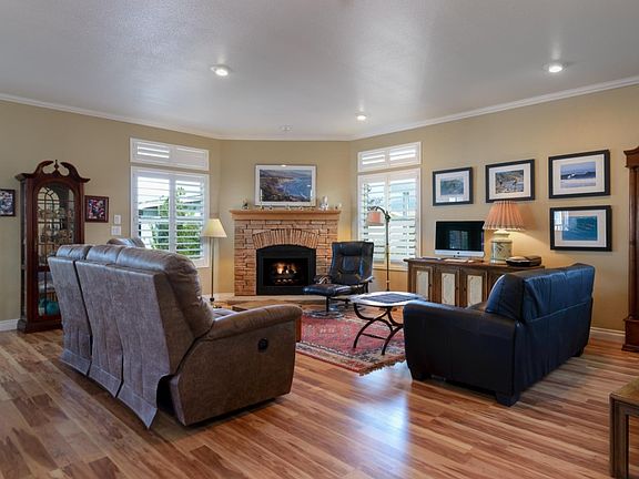 Spacious, light filled, custom-built manufactured home on a corner lot in a beautiful, all age, resident owned park. Open concept with 9 ft. ceilings, custom flooring, and additional transom windows throughout. Feels and lives like a larger home with front and rear entrances, porch with Trex decking, 3 beds, 2.5 baths, separate laundry room, en-suite master with walk-in closet, spacious kitchen with walk-in pantry, and a stone fireplace. Multiple custom features and upgrades (see ?List of Features? document) complete this +/- 1,832 sq. ft. home.This resident owned park is in a picturesque setting with a private lake for fishing and paddle boating. Plentiful leisure and entertaining options with a lakeside pool, spa, sauna, gym, and large clubhouse. Less than a 1/4 mile to the Atascadero Creek trail and the bike path to Goleta Beach Park and UCSB.