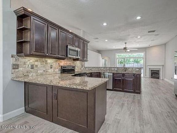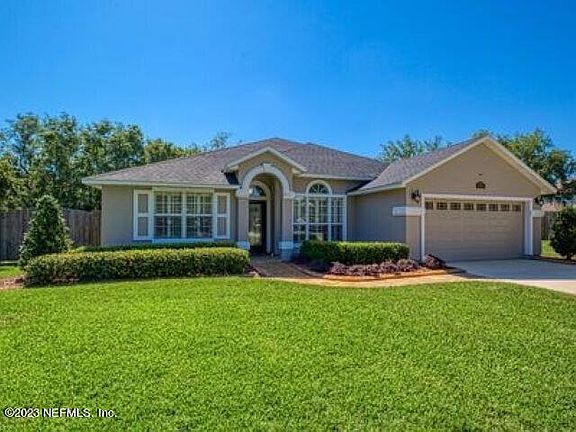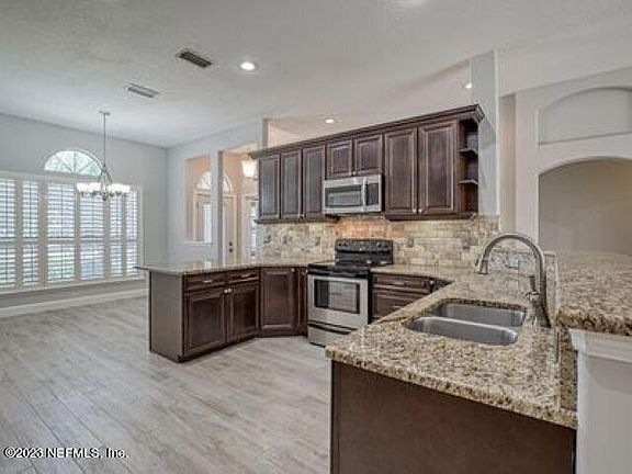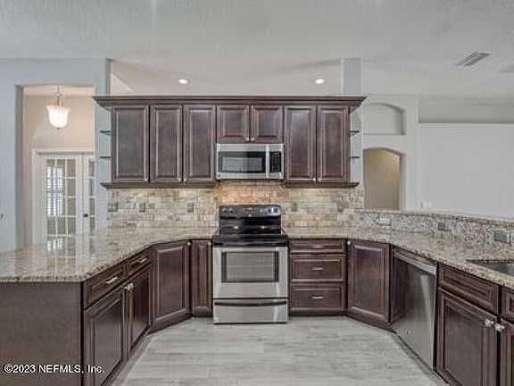 This home is located in the peaceful and well-established neighborhood of Walden Chase. House has 4B/3B with an office/flex space. Just a 15 minute drive to the beach and only a 5 minute drive to the Nocatee Town Center. Located at the end of a cul-de-sac, this home features a .39 acre lot, fenced outdoor area with a pool and plenty of yard space. The kitchen has been updated with stainless steel appliances, a stone tile backsplash, and granite countertops. In the master bathroom you'll find tile flooring, granite countertops, and a walk-in shower and tub. Home features light colored, wood-looking tile flooring throughout all bedrooms and living spaces.