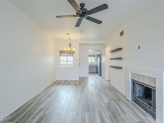 Ready to move in 2 bed/2 bath 2nd story pool side condo. New AC 2025! Large walk in closets in both bedrooms, newer kitchen with stainless appliances and granite counters, inside laundry w/ included W/D, updated divided bath in owner's suite, large updated full second bath, wood look tile floors throughout, fire place and balcony w/ storage closet overlooking pool. Community features 3 pools all with loungers, umbrellas, and Ramadas, 2 spas, gas and charcoal BBQs, pet friendly pick up stations, car wash areas, well kept grass and tree filled grounds, a tennis/pickleball court that accepts walk-ins and reservations, and a beautiful clubhouse with bathrooms, meeting/party facilities, pool table, 24 hour fitness center, large outdoor fire pit and small library. Dedicated cover parking space Ample guest parking available near unit. 2017 Updated Kitchen and Bathrooms: Lighting, Stainless Appliances, Granite Counters throughout, new toilets, and Wood Plank Tile Flooring throughout. Fireplace in Great Room.