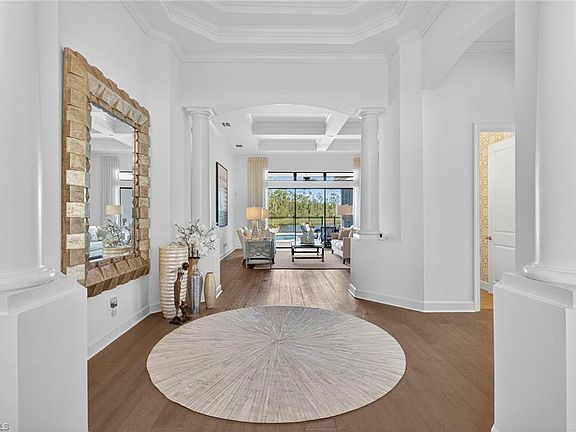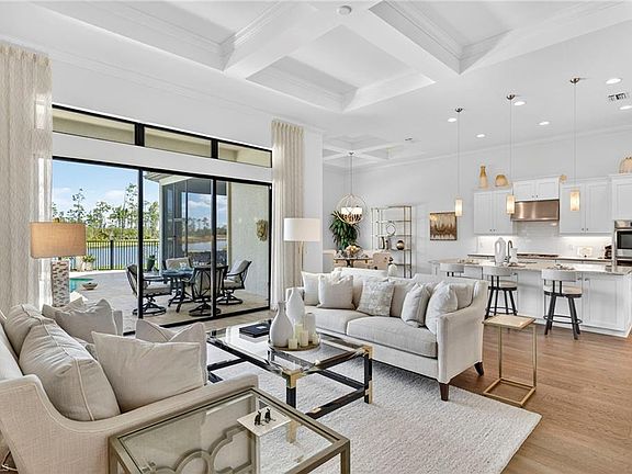 Sophisticated Home in Esplanade Golf & Country Club — Full Golf Membership Included. Welcome to this executive-level residence in the prestigious Esplanade Golf & Country Club, offering the ultimate blend of sophistication, comfort, and resort-style living. As you walk into the foyer, the wide entryway and detailed ceiling draw you in to this homes elegance! The owners have invested over $250,000 in upgrades, transforming this home into a showcase of refined design and modern functionality. Featuring three ensuite bedrooms plus a den and 3.5 beautifully appointed bathrooms with quartz countertops, every space reflects quality craftsmanship and attention to detail. Inside, enjoy 12-14-foot soaring ceilings, marble flooring in the guest bathroom, and a gourmet kitchen equipped with premium appliances, custom cabinetry, and a spacious island ideal for entertaining. Each bedroom includes custom built-in closets, while the den with built-ins offers an elegant workspace or reading retreat. A three-car garage provides generous storage with extensive shelving. Step outside to a private outdoor living oasis, surrounded by travertine tile on the lanai and pool deck where retractable screens under the truss allow you to enjoy the best of indoor-outdoor living in complete comfort. The fully equipped outdoor kitchen is perfect for gatherings, while breathtaking lake and preserve views create a serene backdrop of total privacy and natural beauty. Additional highlights include a whole-house water softener system, state-of-the-art security system, salt water pool heated by gas and extra outdoor landscaping and lighting. The outside of the home has been newly painted along with the trim and eaves. The driveway has just been power washed and sealed and ready for its new owner! Located in one of Naples’ most sought-after golf communities, residents enjoy championship golf, tennis, pickleball, resort-style pools, fine dining, fitness and spa facilities, as well as an active social calendar — all part of the vibrant Esplanade lifestyle. Enhance your move-in experience with the option to negotiate the beautiful furnishings, making it as effortless as possible to settle into your new home. This property is the epitome of luxury living in Naples, providing a serene lifestyle with access to world-class amenities in the Esplanade Country Club. Don't miss out on this exceptional opportunity to own a stunning home with unparalleled views and privacy. Schedule your viewing today!