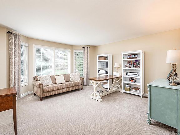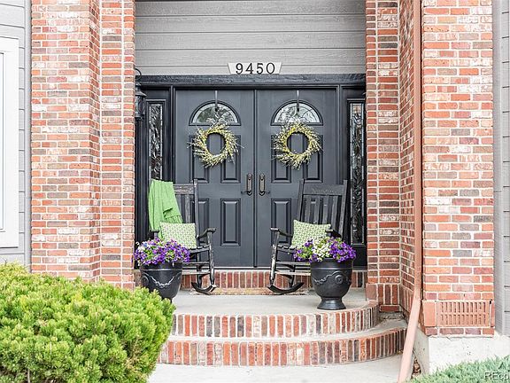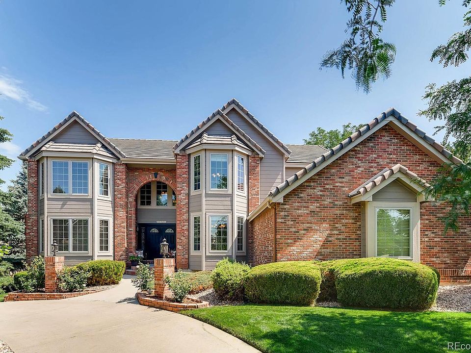 Step into timeless elegance with this grand semi-custom home in the prestigious Ridgeview community of Lone Tree. Privately set on a gorgeous .41 acre lot the home boasts a park-like backyard and custom covered deck, perfect for entertaining family and friends. Impeccable taste is evident throughout this extraordinary home which features 6 bedrooms, 6 baths and over 5200 square feet of exceptional quality and design. A traditional brick exterior gives the 2-story a stately presence. You will enter into a bright, open foyer with curved staircase. The stunning kitchen is a custom remodel with professional grade appliances sure to inspire including built-in Sub-Zero refrigerator, induction cooktop & Dacor warming drawer. You will also enjoy custom cabinetry, slab granite countertops, center island, under cabinet lighting, butler's pantry and a large breakfast nook. A sense of openness fills the 2-story family room, with floor to ceiling windows and a classic brick fireplace. Main floor highlights also include an elegant formal dining room, study/living room and a bedroom suite with ¾ bath. The upper level is comprised of 4 bedrooms, including a private master suite, an ensuite guest bedroom and 2 bedrooms adjoined by a Jack and Jill bath. The master suite is sheer luxury with vaulted ceilings, stone fireplace and a 5-piece travertine tile master bath with walk-in closet, separate vanities and jetted tub. The spectacular garden level basement expands your living space further with an expansive recreation room, 6th bedroom with private ensuite bath and bonus powder bath as well. Colorado outdoor living at it's finest, a beautiful custom covered deck spans the entire length of the home and is the ideal outdoor space to relax and savor the incredible privacy and magnificent trees surrounding the property. Ridgeview at Lone Tree is a highly regarded golf community close to Light Rail, Bluffs Regional Park, Lone Tree Rec Center and miles of hiking and biking trails.