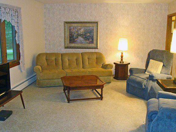 Welcome home! Great rambler on almost an acre with walkout basement, located just a block from Lake Bavaria public dock; Third bedroom on main level converted to laundry and shower; HMS home warranty; Triple-zoned heat; hardwood flooring under the living room carpet. Enjoy peace and quiet!