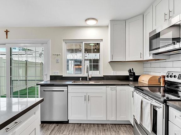 Looking for an affordable family home in a great location!? Don't miss out on this 4 bed/2.5 bath townhome in Santee! The heart of this home is the newly renovated kitchen. Enjoy the flexibility of the breakfast bar and prep area, and the convenience of the walk-in pantry! In addition to the new kitchen, this home is move-in ready with fresh paint and baseboards throughout, and LVP flooring. This home's convenience extends beyond the front door! This home is just a short walk from it all: schools, restaurants, grocery stores, the library, award winning Mast Park, and the HOA pool is just across the street! Keep your home (and your budget) comfortable year round with the energy efficient upgrades to the home, including dual paned windows, new HVAC, and an affordable solar payment! Additional highlights include detached 2-car garage, laundry closet, and new turf in the backyard
