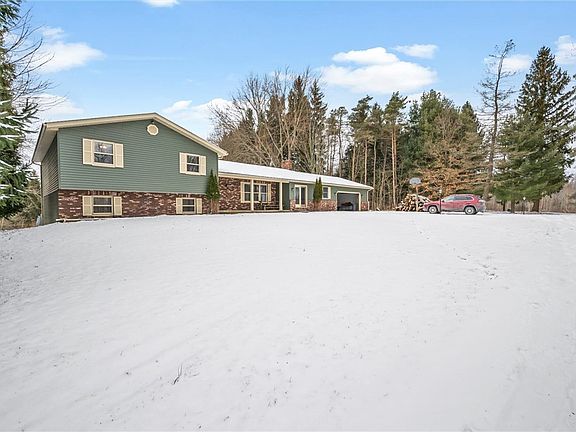 If you have been looking for a large home with acreage and privacy, this is it! This home has 4 bedrooms and 3 full bathrooms, one of which has a huge jacuzzi tub. 2 rooms on the first floor could easily be converted into 2 additional bedrooms. The living room features cathedral ceilings and a working fireplace and the lower family room has a hook-up for a pellet stove. This house is unique because the owner can choose to heat it with oil or wood, both of which are easily accessible in the basement. The basement is huge and a great space for storage because it is very dry. Off the back of the house is a new, 24x24 deck surrounded by a large fenced-in backyard. There are also many other great features including a 48x48 barn, chicken coop, deer stand, tree house, first-floor laundry, and more. There are so many things you can use these 13 acres for! This property is also currently enrolled in Clean & Green which allows for cheaper taxes! Home is being sold "As-is"