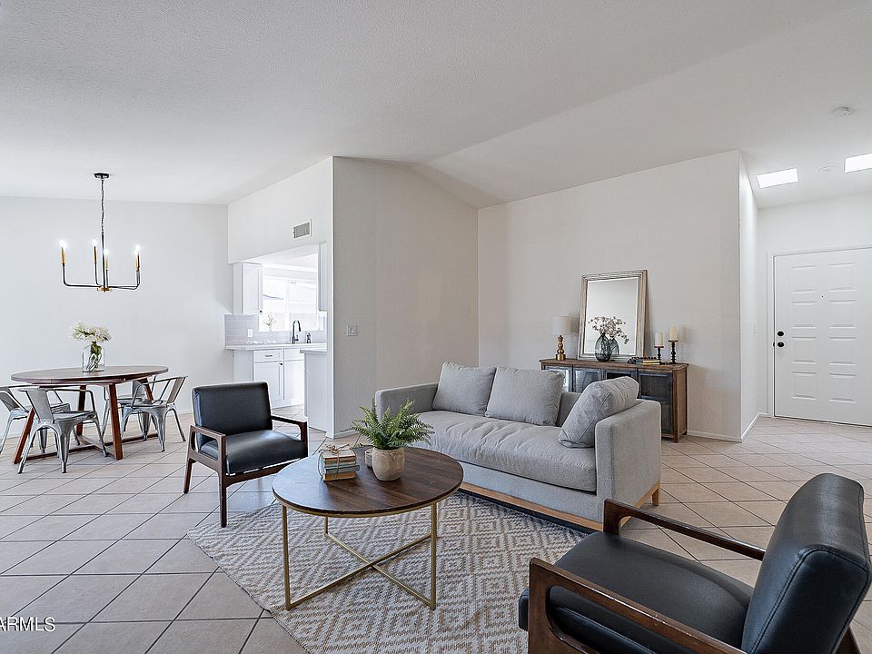 Welcome to your dream home in Peoria! Situated in a desirable neighborhood, this remodeled property offers 3 bedrooms, 2 baths, tile flooring in common areas & modern upgrades throughout. The open-concept floorplan seamlessly connects the living, dining, and kitchen area, creating a spacious and airy ambiance. The galley kitchen, has been thoughtfully updated with white shaker cabinetry, quartz countertops & new stainless-steel appliances. Both bathrooms have been updated with new vanities & dual flush toilets. Inside this primary suite you will find a private backyard access, walk-in closet & full ensuite bathroom. Out the back you have an extended covered patio and so much potential for your gatherings. This incredible home will sell in a flash. Don't miss it!