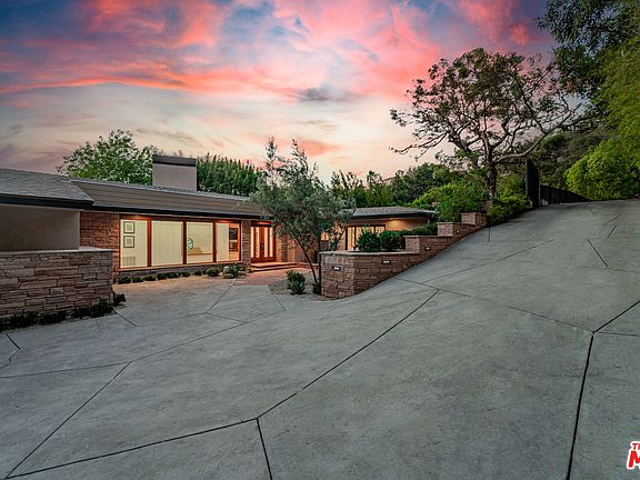 Located in the prime Crest streets down a long driveway, this fabulous gated estate with spectacular canyon and verdant views is a prime example of mid century classic modern architecture at its best. Lloyd Wright inspired chic private home is completely remodeled to todays living standards. Featuring a stunning courtyard with water feature, new kitchen with brand new Thermador appliances, new bathrooms, lutron lighting system, open floor plan, high ceilings, and a great indoor outdoor entertainment flow. Wet bar is located in recreation room for a poolside entertainment convenience. There is a second gated entry that provides the potential for a guest suite or home office utilizing the entire lower level separate from the main level. 4 additional bedrooms, office and den complete this unique home.