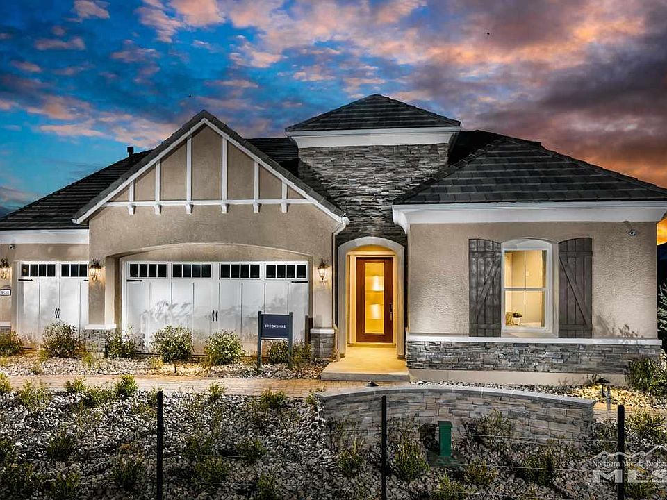 This home has a convenient foyer that opens up into the well-designed great room and dining room, with views through an expansive sliding glass door system to the spacious covered patio beyond. Perfect for entertaining, the well-appointed kitchen overlooks the main living space and features a large center island with breakfast bar, ample counter and cabinet space, large walk-in pantry, and bright adjacent breakfast area. The marvelous primary bedroom suite is enhanced by a beautiful window display, spacious