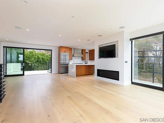 This modern upper La Jolla Shores home blends thoughtful design and high end craftsmanship through out. An 8-foot steel pivot entry door opens to a bright, open interior featuring engineered wood floors and a striking steel tethered staircase. Multiple decks and a rooftop terrace provide seamless indoor-outdoor living. The kitchen is outfitted with premium Thermador gas stove and built-in wine storage with glass & stainless steel door perfect for entertaining guests. Custom closets, motorized window coverings add comfort & sophistication. Easy access to beaches, trails and nearby coastal communities, this home delivers comfort, elegance and a relaxed Southern California lifestyle.