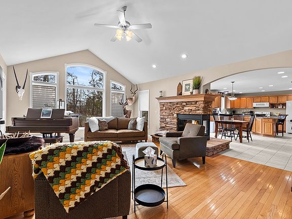 Gas fireplaceWalk-in closetQuiet wooded settingMain-floor primary suiteOpen main levelTiled walk-in showerSoaking tub