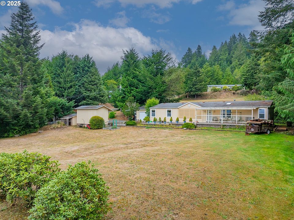 Charming 3 Bed / 2 Bath + Office on Spacious 0.67-Acre Lot!Welcome to this well-maintained manufactured home situated on the edge of Coquille, offering privacy and room to spread out. This 3-bedroom, 2-bath home also includes a dedicated office space perfect for remote work or a hobby room. Enjoy the outdoors year-round with covered front and back decks, ideal for relaxing or entertaining. The property includes covered parking, a detached garage, and a small workshop, giving you plenty of space for storage, projects, or tools. Inside, you'll love the open kitchen with abundant cabinet space, a cozy wood stove, and the comfort of a heat pump for efficient heating and cooling. The primary suite features a walk-in closet and private bath for your own retreat. Located on a private lot just minutes from town, this home offers peaceful living with convenient access to amenities. Don’t miss this opportunity—schedule your showing today!
