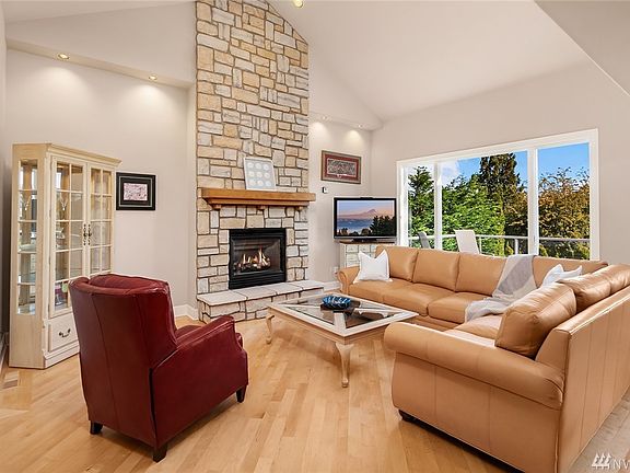 Impeccable home with lake views and private beach access! The bright and airy great room with vaulted ceilings and the gourmet kitchen open on to a large deck, superb for entertaining. Upstairs the master suite is the perfect retreat with luxurious master bath. The second bedroom has it's own bath and is great as a nursery or a den. The basement has two spacious bedrooms and a rec room with access to the easy care yard. Gleaming hardwood and tile floors throughout. Over-sized garage.