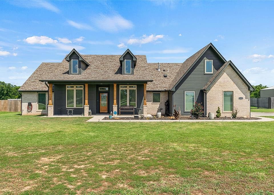 This beautifully maintained home sits on a fenced 1-acre lot (MOL) and offers spacious living with an upstairs bonus room that could serve as a 4th bedroom. It features large front and back porches, perfect for relaxing outdoors. The home boasts two dining areas, with one flexible enough to be used as an office. The master bath includes a double vanity, a luxurious jacuzzi tub, and an enormous closet. A storm shelter adds extra peace of mind, and it’s conveniently located in the sought-after North Rock Creek School district.