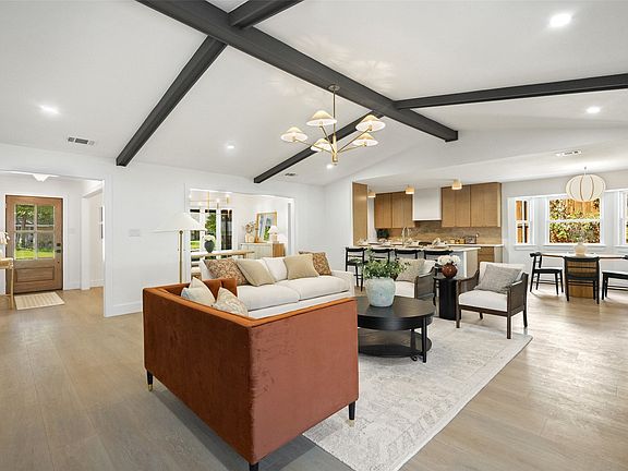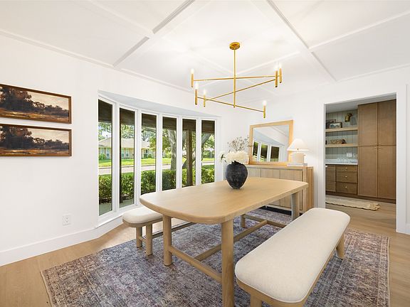 Clean linesContemporary chandelierBeautifully refined fixturesMajestic treesFormal dining roomAbundant natural lightLush backyard sanctuary