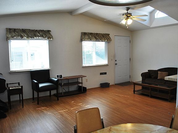 Spacious and beautiful home in a 55/35 community with newly added sky lights in living room and kitchen, upgraded windows, all appliances such as washer, dryer and refrigerator included. Lovely floor plan with formal dining room plus a bar counter top area. Newer appliances, laminated wood flooring throughout. Newer central heat and air conditioning, updated kitchen with lighter color cabinets and much more. Close to all the restaurants, shops, grocery stores, Walmart, Lowes and Kohl.