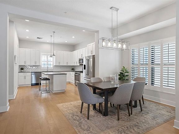 Discover the Magic of Downtown Dunedin Living at Gramercy Court! Welcome to the premier end-unit townhom in the highly sought-after Gramercy Court community! This 3-bedroom, 3.5-bath residence is truly one of a kind—the largest and most exceptional in the neighborhood. With its thoughtful design, upscale finishes, and unmatched location, it offers the perfect blend of luxury and coastal charm. As an end unit, this home boasts extra windows that fill every level with natural light, creating a bright and airy atmosphere you’ll love. Inside, you’ll find engineered hardwood floors in the main living area, plantation shutters throughout, direct current ceiling fans with silent motors, and even an elevator for effortless access to all three floors. The oversized two-car garage includes a 220-volt plug for your golf cart, while the installed gas hookup makes it easy to connect a generator for peace of mind. The lower-level bathroom has also been upgraded from a tub to a sleek shower, adding modern functionality to the space. The first floor features a private bedroom with a full bath—ideal for guests or a home office. Upstairs, the open-concept main level is a dream for entertaining, with 10’ ceilings, a gourmet kitchen boasting quartz countertops and stylish gray shaker cabinets, and a convenient half bath. The top floor offers two spacious primary suites, each with beautifully updated bathrooms and generous storage. Outside, enjoy multiple balconies and a lush community courtyard with water features and relaxing seating areas. From this prime downtown Dunedin location, you can stroll to shops, restaurants, breweries, and the Pinellas Trail—or take your golf cart to the marina and waterfront parks. Don’t miss this rare opportunity to own the most desirable townhome in Gramercy Court. With its elevator, premium upgrades, and unbeatable location, this property defines luxury coastal living. Schedule your showing today—this one won’t last long!