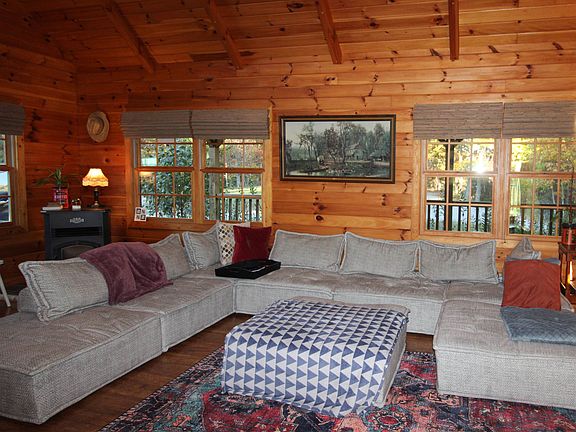 NOW is your chance to own a mountain retreat. Nestled amidst 25 acres of serene beauty, this log-built home offers a tranquil escape. Its 1803 square feet of living space features cathedral ceilings, an open loft, and a primary bedroom with a private office. Inside, a stone fireplace, wood pellet stove, and heat pump provide warmth and comfort, while the dine-in bar and solid surface countertops add a touch of modern convenience. Outside there is a circular driveway. Plus, a detached garage/workshop, full basement, mature fruit trees, covered front porch and rear deck offer ample space to relax and enjoy the breathtaking long-range views. The potential for horses and livestock is here. Great lower pasture would be very possible. Whether you're a nature enthusiast, photographer, or outdoorsman, this property's private walking trails, proximity to outdoor activities including the Jefferson National Forest, make it the perfect retreat.
