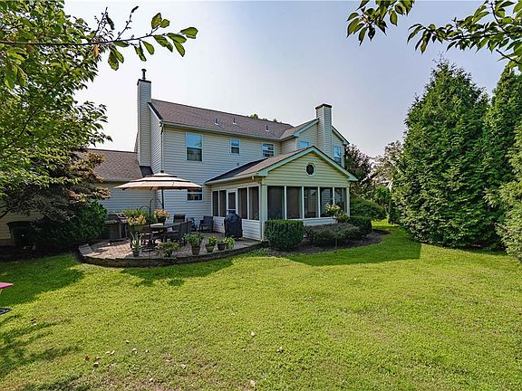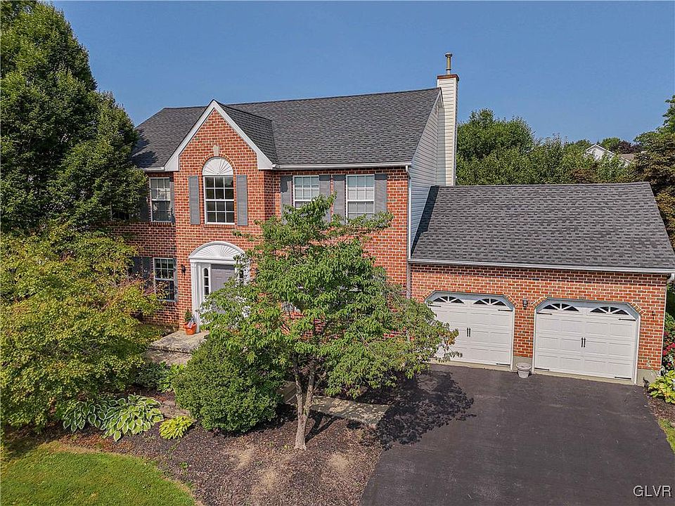 Welcome home to this Hanover Township 4 bedroom, 2 1/2 bath, stately brick-front colonial on a third of an acre. For 30 years, this home has been properly maintained and lovingly cared for by the same owners who built it. You'll feel at home right away as you enter the two-story sun-filled foyer with a clearstory window that shares this natural light with the second-floor hallway. Hardwood flooring can be found in the most popular gathering spots on the first floor – the open-concept family room and eat-in kitchen. The kitchen window offers a view of the paver patio and private backyard with mature trees - but your favorite spot will likely be right through the sliding door of the eat-in area… a gorgeous screened-in porch! The porch has a vaulted ceiling with fan, and was built to be spacious enough for entertaining, sharing family meals in the warmer months, or just listening to the birds with your morning coffee. You will feel spoiled with his and hers walk-in closets in the primary bedroom suite, and enjoy an en-suite bath that features a separate tub and shower, and double sink vanity. This spacious home sits in a popular neighborhood with close proximity to grocery stores, the Hanover Township Community Center and pool, restaurants, shopping, and quick access to Rt. 22. Don’t miss out on a wonderful opportunity to make this home your own! Radon mitigated and offered with a CLEAR CO!