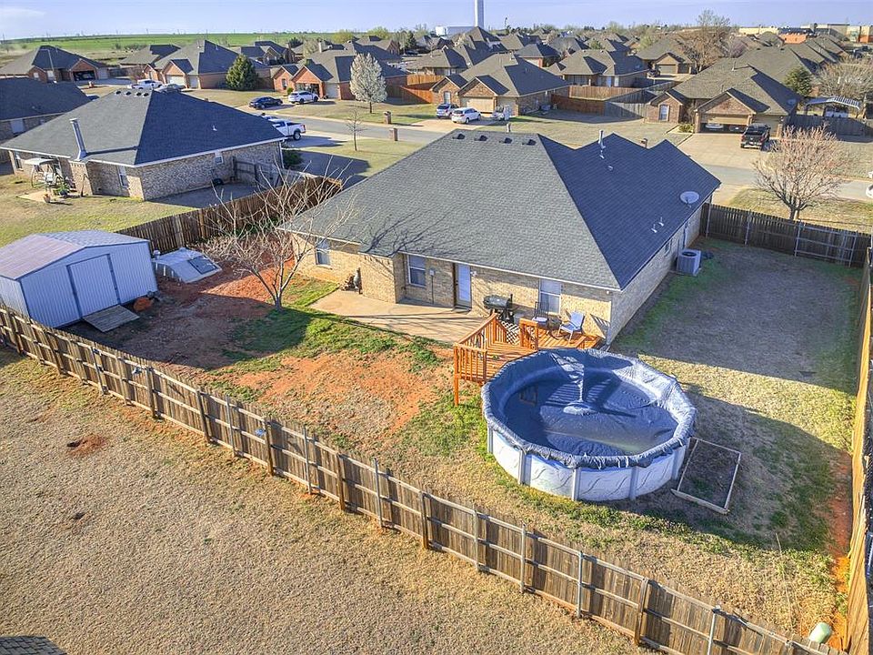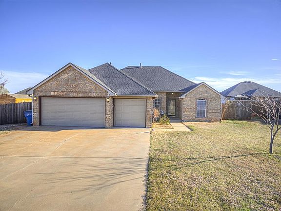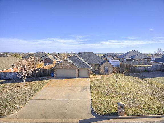 Located across the road from Piedmont High School is this charming neighborhood. Nice paved roads perfect for bike riding & evening walks. The large front yards & deep driveways add to the curb appeal. This lovely home has everything you've been looking for.... 3 car garage, 3 bedrooms, 2 full bathrooms, huge living room w/ a fireplace, 2 dining areas and more. As soon as you step inside you will fall in love with the tall ceilings & absolutely gorgeous wood floors!!! The oversized living room will accommodate the biggest & comfiest sofa w/ plenty of extra space. The dining room is also a great size allowing you to pull up all the dining chairs. Beside the kitchen is the breakfast room that could easily function as a great homework spot or home office. The kitchen overlooks the living room making it easy to stay on top of all the action. The kitchen also has a corner pantry adding to all the storage in this home. The primary suite continues the theme of oversized spaces! The primary bath has a double vanity, private toilet room, shower and a whirlpool bathtub. Extending the full length of the bath is the large primary closet that has doors on each end & built-in shelving. On the opposite side of the home are the 2 additional bedrooms w/ large closets & a full bathroom. Step into the backyard & fall in love with your own pool w/ attached deck - now you'll enjoy these hot Oklahoma summers! Don't worry about the possibility of Oklahoma tornadoes anymore w/ your own new storm shelter (still has a 10 year warranty!). Most of interior was recently painted w/ several updated light fixtures, new bathroom mirrors & new storm shelter. Come see this beautiful home now before it's gone!!!