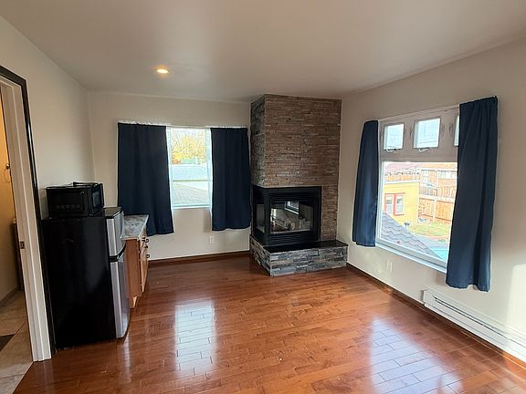 Walk-in showerBright open layoutUpdated studioBeautiful hardwood floorsModern stone fireplace