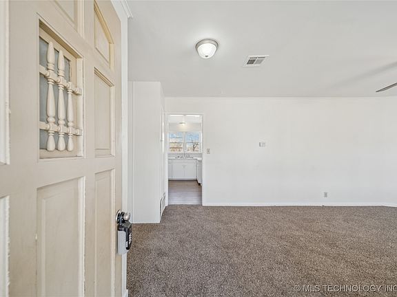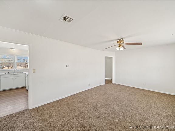 Cute and clean! 3 Bedroom, 1 Bath on a large corner lot with a fence! New roof 2024, new inside paint and carpet, huge living area, large flex room, carport and shed stay! Located just off of historic Route 66, easy access to shopping, dining or traveling to Tulsa!