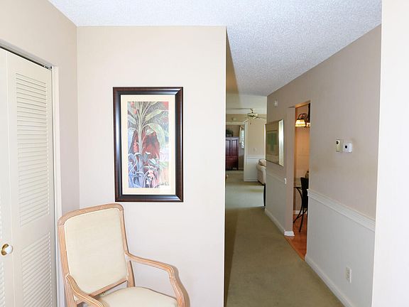 Great location with the Savannah's Nature preserve in rear. Move in ready with an updated kitchen that features granite countertops, lower pull-out drawers, cabinets with crown molding and polished wood flooring. Living room has sliders that opens to a patio with lush landscaping. updated vanities in both bathrooms. Master has a large shower. Fees include water, sewer, trash, basic cable, Internet, exterior maintenance, lawn care, clubhouse, pool & tennis courts and 24-hour manned gate.