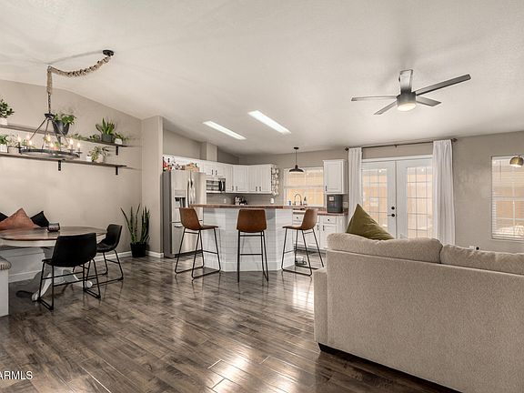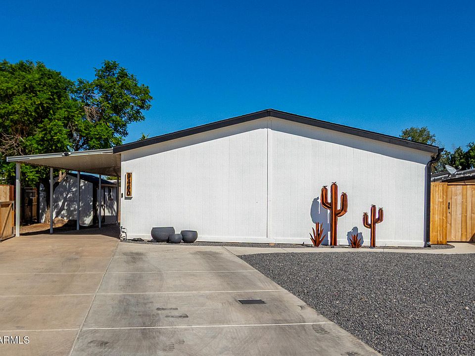 Don't scroll past this one! This Mesa gem checks every box. Sitting on a massive 8,700 sq ft lot with no HOA, this 2006-built manufactured home offers 3 bedrooms, 2 renovated bathrooms, a versatile office/den, and upgrades that truly matter. You'll love the open-concept layout with vaulted ceilings and bright, connected living spaces—perfect for everyday life or easy entertaining. The primary suite is thoughtfully split from the other bedrooms for added privacy, and both bathrooms have been completely updated with clean, modern finishes. Big-ticket items are already done: new roof in 2023, brand-new A/C in 2024—so you can move in without the stress. Step through the double doors off the kitchen and you'll find a poured patio ready for 8 months of Arizona sunshine, perfect for grilling & & chilling! There's even a large shed for storage and an extended driveway for extra parking or toys. Whether it's your first home, a downsizing move, or a smart investment, this one's built for real lifeand ready when you are.