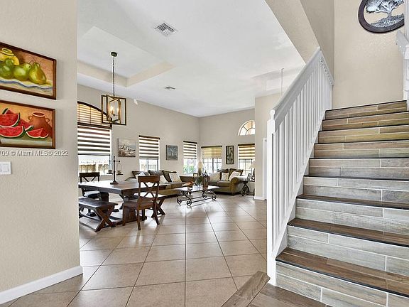 Stunning updated completely remodeled must-see 4 Bed/3 Bath Home in Cutler Bay. The kitchen and appliances were redone in 2016, with hurricane panels throughout. The stairs, as well as the second floor, have been renovated. with a huge master bedroom with its removed master bathroom This is a beautiful home that is in move-in condition for your family, walking distance to the community center. Lakes by the Bay gated area with country club amenities. Part of the garage has been converted into an office/playroom/studio. All window dressing stay, and the chandelier in the foyer and above the dining room DO NOT CONVEY table.