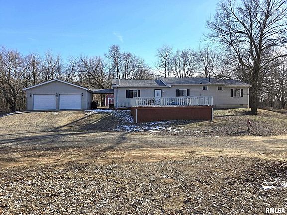 Beautiful property (see photos)! Spacious 3 bedroom, 2 bathroom ranch located on 11+/- ACRES with walking/driving trails. Great floor plan...offers large living room, a cozy family room with fireplace, main floor laundry room, a nice primary suite (with 2 walk in closets, tub and shower) and a large deck with built in hot tub overlooking the great view!! Awesome kitchen with large island and french doors leading out to a covered breezeway connecting the oversized 2 car garage! Note: Solar panels (will be paid by the seller) make for low utilities!! A REAL PLUS...there is a camper with a deck and a lean-to that is located at the very back of the property (perfect for hunters). Estate Sale.. AS IS. Room sizes and square footage are estimated, not guaranteed to be correct. SQ. FT. per Tazewell County records.