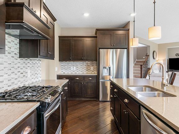 Bright, open floor-plan…feels LIKE NEW! Gourmet kitchen w/ lg center island, quartz counters, SS apps (inc gas cooktop), hood, backsplash & pantry. Spacious Living Room w/ built-ins & fireplace. Walk out to gorgeously landscaped backyard w/ gazebo, concrete patio, hot tub (included) & shed, fully fenced-in. ML office. Hickory hardwood floors throughout. Upper Level w/ 4 beds, 3 baths, oversized LOFT & laundry room (w/ built-ins). Primary Suite including tiled serenity shower w/ dual shower heads, dual sinks & oversized walk-in closets. Finished Lower Level w/ Family Room, built-in bar w/ beverage fridge, addt’l bed & 3/4 bath. Addt’l PERKS: whole home water system by Water Doctors, gutters, water softener, in-ground sprinkler system & epoxy floors in garage. STUNNING curb appeal w/ additional outdoor seating at front patio & welcoming double doors. Neighborhood playgrounds nearby. Amazing opportunity!